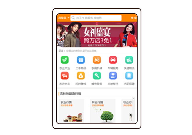 農農圈通過實施的信息發布,促成各個類別的交易形成。目前的模塊包括:求職服務、農業產業、二手物品、農用機械、快遞物流、農農拼車、婚喪服務、閑時賺錢等。